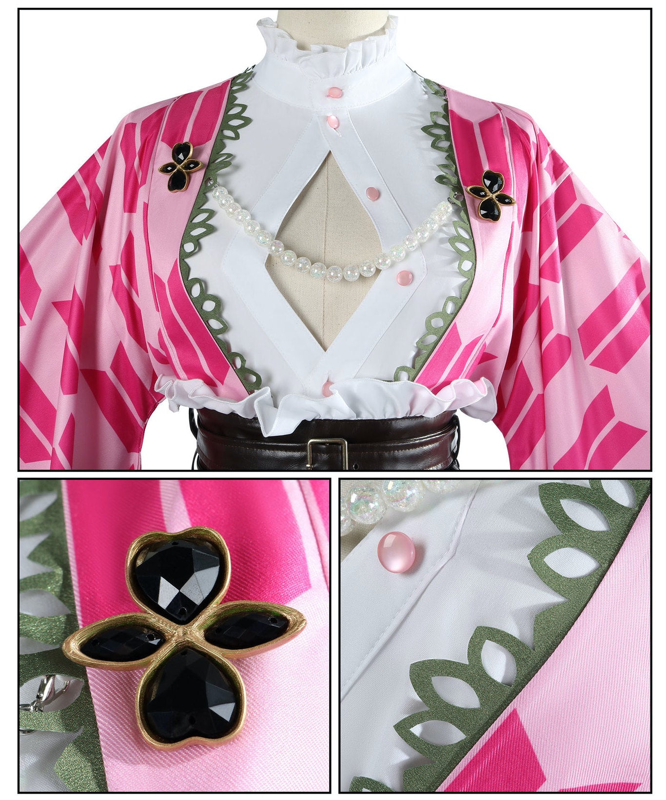 Demon Slayer: Kimetsu no Yaiba, this 5th Anniversary Festival version cosplay costume captures her vibrant charm and elegant celebration look. Designed with flowing sleeves, layered skirt detailing and signature pink-green colour accents, this outfit reflects Mitsuri’s soft yet powerful presence — perfect for conventions, photoshoots and collectors.